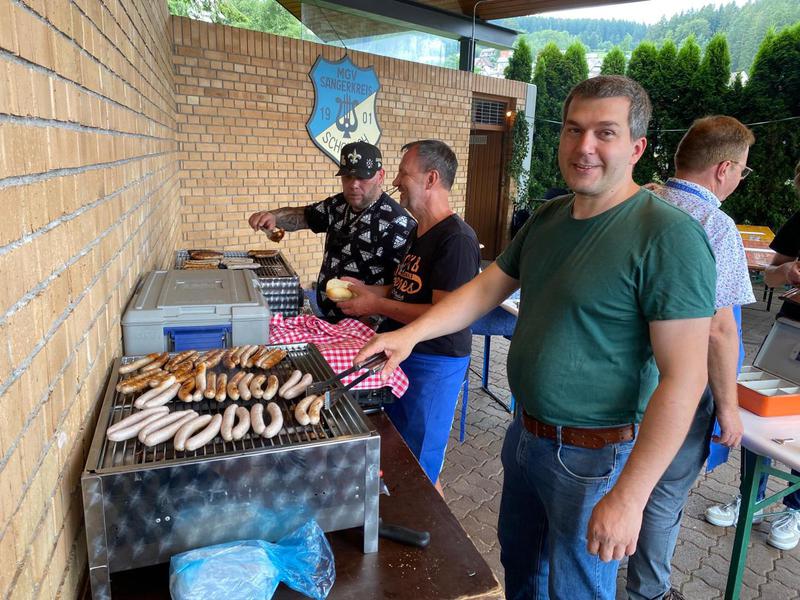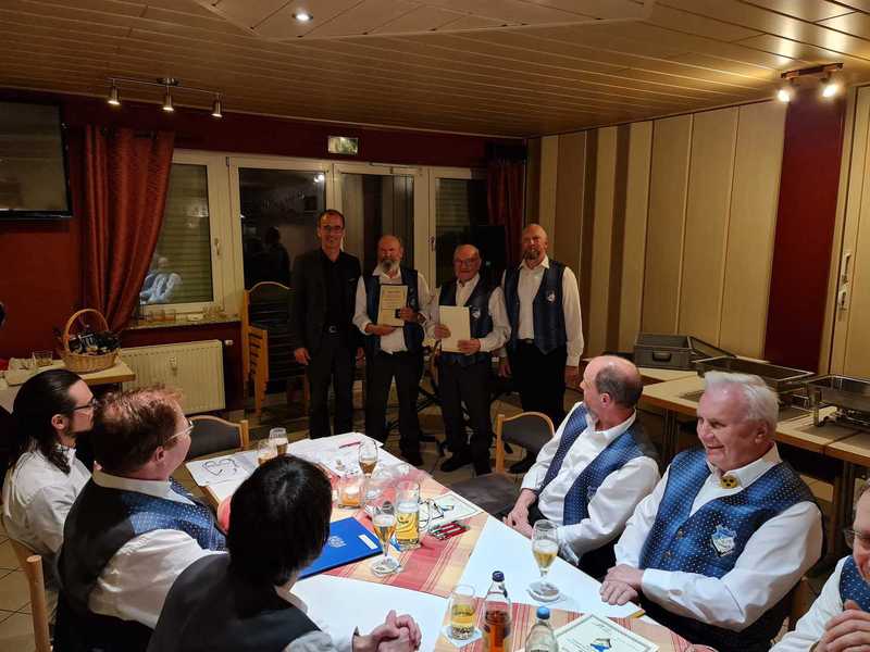 Schonach Der Männergesangverein (MGV) Schonach hatte zur Hauptversammlung in den Volltreffer eingeladen. Zum ersten Mal seit drei Jahren konnte man wieder die Regularien abhalten.Vorsitzender Bernd Kaltenbach zeigte sich dankbar, dass man nach der langen Pandemiephase eine solch große Runde bei der Versammlung sei. Das beweise, dass der Zusammenhalt im Verein sehr gut sei und die Sänger viel Spaß bei ihrem Tun hätten. Und er freute sich, dass man nun endlich auch den neuen Chorleiter Samuel Sembach offiziell begrüßen könne.Kassierer Markus Nagler musste von einem kleinen Minus bei den Einnahmen berichten, allerdings lag dies daran, dass man beschlossen hatte, 2020 keine Beiträge einzuziehen und die von 2021 noch nicht eingezogen hatte. Insgesamt, so Nagler, habe man aber ein gutes finanzielles Polster.Schriftführer Thomas Strunskus wusste, dass 2019 noch ganz normal für den MGV lief, in den Folgejahren aber das Vereinsleben nahezu zum Erliegen kam.Einer Satzungsänderung sollte die Versammlung anschließend zustimmen. Nagler erklärte: Aufgrund einer Reklamation des Finanzamts mussten kleine Passagen hinsichtlich der Gemeinnützigkeit geändert werden. Die Mitglieder genehmigten die Änderung einstimmigKaltenbach wies noch darauf hin, dass man ja eigentlich 2021 das 120-jährige Bestehen im Rahmen eines »Tag des Liedes« feiern wollte, was der Pandemie zum Opfer fiel. Dies will man dieses Jahr am 24. September im Haus des Gastes nachholen.Insgesamt freute sich Kaltenbach, dass man endlich wieder loslegen könne. Die Proben finden ab sofort jeden Donnerstag ab 20 Uhr im Probelokal in der Schule statt. »Und über weitere Sänger freuen wir uns natürlich jederzeit«, bekräftigte er.Bürgermeister Frey freute sich ebenfalls, dass das gesellschaftliche Leben wieder startet. »Allerdings wird es großer Anstrengung bedürfen, wir haben schwierige Zeiten, aber gerade hier gilt es, zusammenzuhalten.« Er dankte dem MGV schon im Voraus, dass dieser am 13. Juli einen der drei Feierabend-Hocks im Kurpark organisiere.Nach dem Beinahe-Aus des Männergesangsvereins vor einigen Jahren übernahm die Jugend-Musik-Schule St. Georgen den Kinderchor des MGV. Der Verein selber stellt für die Proben in Schonach seine Räumlichkeiten zur Verfügung und hilft mit Noten aus. Aktuell probt der sogenannte Grundschul-Chor unter Leitung von Martina Schwarz zum Thema »Verrückte Tiere« mit Kindern in St. Georgen, Furtwangen und Schonach. Geprobt wird in Schonach immer freitags von 16.30 bis 17.15 Uhr im Probelokal des MGV. Nach Abschluss des Projekts will man einen Ausflug in den Zoo machen. Die MGV-Sänger beschlossen, diesen Ausflug mit 150 Euro zu unterstützen.Wahlen und EhrungenZahlreiche Ehrungen gab es bei der Hauptversammlung des MGV. Für zehn Jahre aktive Mitgliedschaft wurde Thomas Wenke geehrt, 20 Jahre waren es für Markus Nagler, 25 Jahre für Raimung Beha und Manfred Meissner. Für 30 Jahre wurden Wolfgang Förtsch, Christian Hipp und Uwe Francois geehrt, Bernd Kaltenbach und Herbert Burger für 40 Jahre.Für 50 Jahre wurde Marinus Kaltenbach geehrt, er bekam aus den Händen von Bürgermeister Frey die goldene Münze der Gemeinde. Urban Fleig wurde gar für 60 Jahre geehrt und sprengte damit die Ehrenordnung der Gemeinde, die nur bis 50 Jahre reicht. Frey überreichte ihm ein Intarsien-Wappen.Bei den Wahlen wurden für ein Jahr der Vorsitzende Bernd Kaltenbach, Kassierer Klaus Nagler, Beirat Christian Hipp und die beiden Kassenprüfer Herbert Fehrenbach und Christian Herr wiedergewählt. Für zwei Jahre bestätigt wurden der zweite stellvertretende Vorsitzende Wolfgang Förtsch, Schriftführer Thomas Strunskus und Beirat Raimund Beha. Neu gewählt wurde Rouven Aliprandi als Pressewart.
