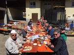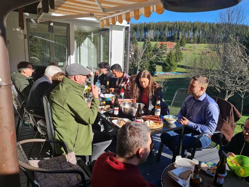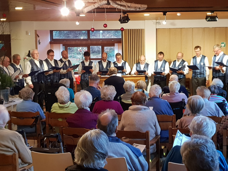 An der frischen Luft und bei strahlendem Sonnenschein, wurde den Heimbewohnern ein Ständchen dargebracht. Unser Chorleiter Samuel hatte das richtige Händchen beim Auswahl der Lieder. Es wurde geschunkelt, gewippt und mitgesungen. Die Heimbewohner sangen uns aus Dankbarkeit noch ein Lied zu Ehren.