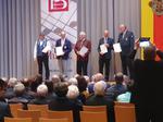 Bürgermeister Jörg Frey (links) und Vorsitzender Bernd Kaltenbach (rechts) ehren mit Marinus Kaltenbach (Zweiter von links) und Urban Fleig langjährige Vereinsmitglieder. Foto: Eberl